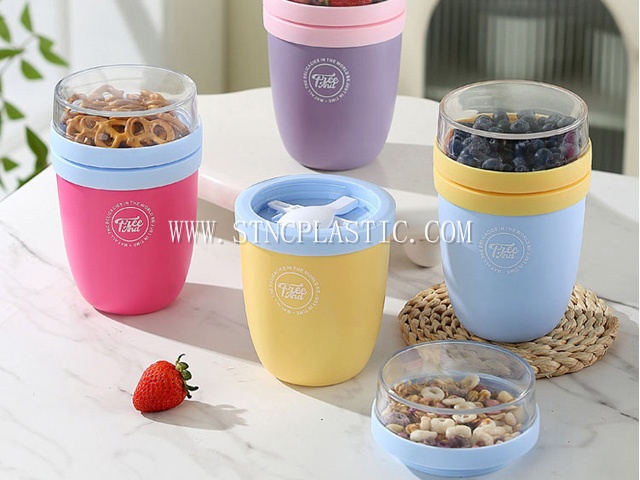 plastic salad cup with folding spoon 850ml