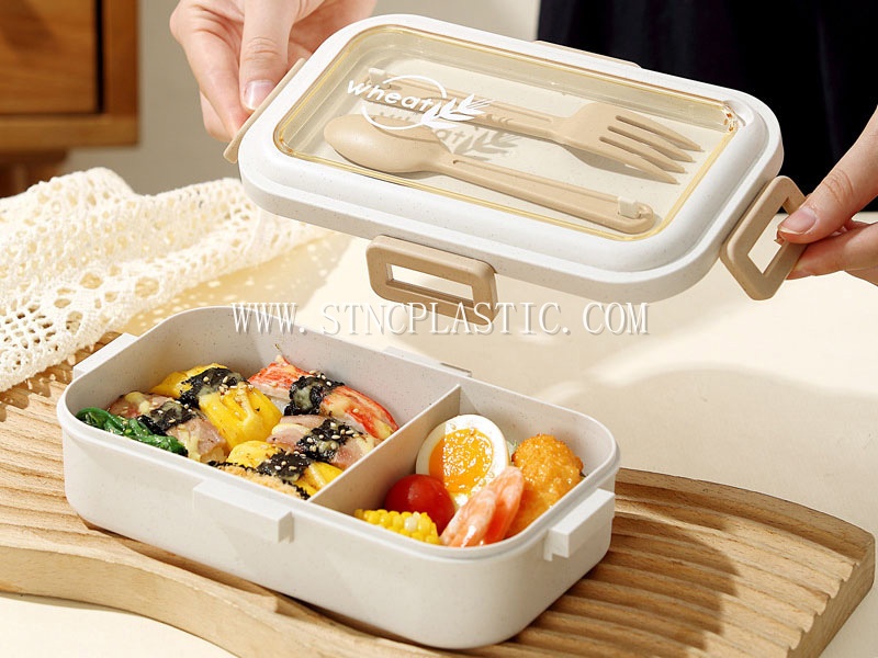 DESC.:wheat fiber 2-grid lunch box with spoon&fork 780ml
