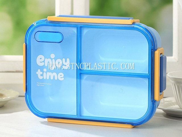 DESC.:plastic enjoy time rectangular cartoon 3-grid lunch box with spoon&fork 700ml