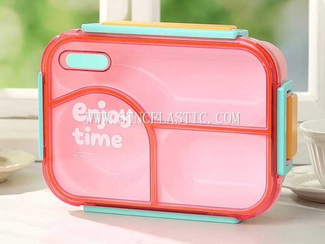 plastic enjoy time rectangular cartoon 3-grid lunch box with bowl/spoon&fork 650ml