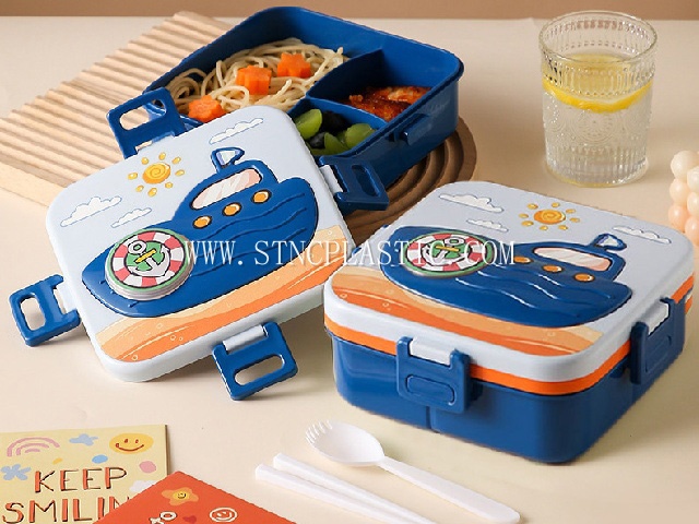 DESC.:plastic square cartoon cruise lunch box with sauce box+chopsticks+spoon